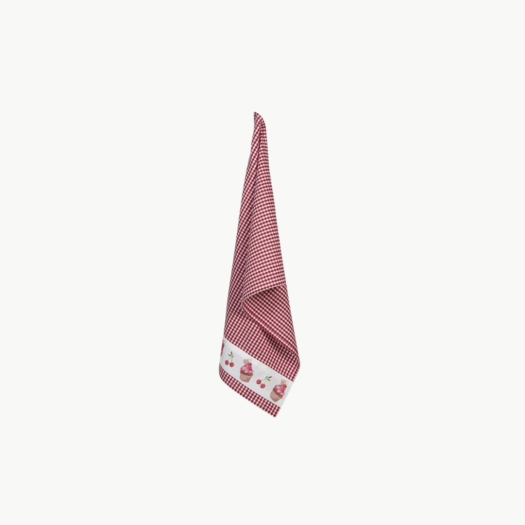 Pflegeleichtes Geschirrtuch aus 100% Baumwolle, verziert mit niedlichen Kirschkuchenmotiven. Die karierte Optik verleiht Ihrer Küche einen charmanten Landhausstil. Perfekt für die tägliche Küchenarbeit und ein süßes Accessoire für alle Backliebhaber.