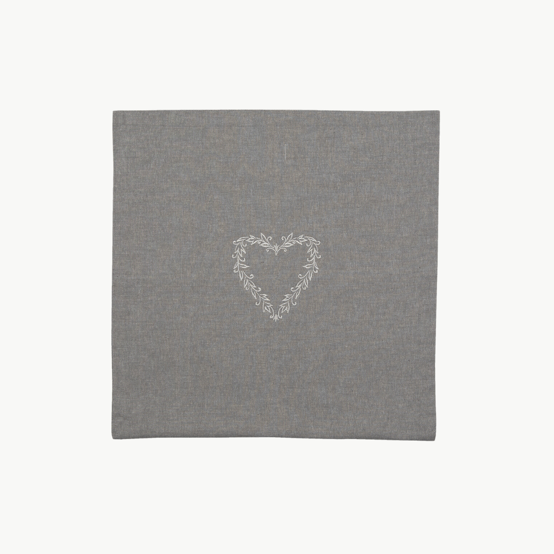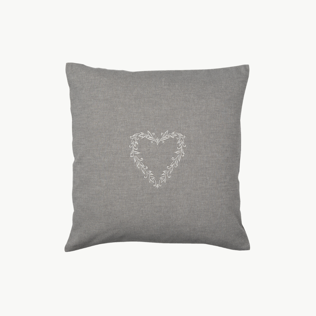 Entdecken Sie die romantische Kissenhülle "Lovely Heart" mit Herzmotiv von Clayre & Eef. Die grauen Bezüge sind in hochwertiger Landhaus-Optik mit liebevoller Stickarbeit bestickt. Ein wunderschönes Dekorationsstück für Ihr Zuhause voller Herzlichkeit!