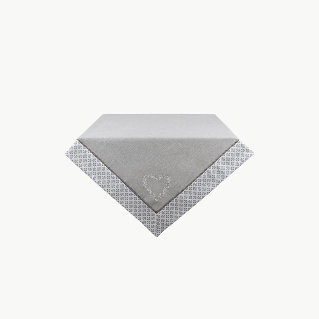Diese schlichte, grau weiße Tischdecke aus der Serie "Lovely Heart" von Clayre & Eef veredelt jeden Tisch.